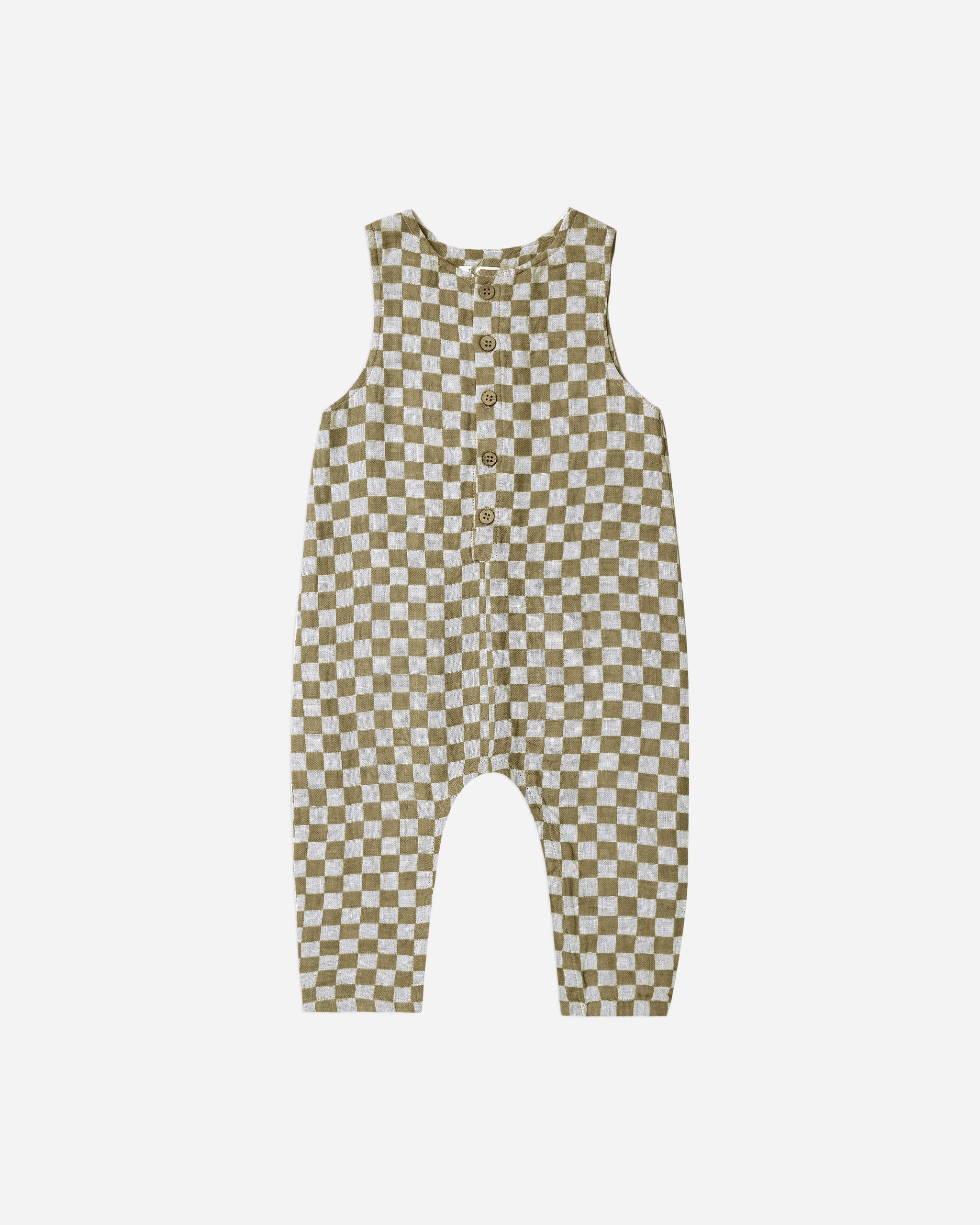 Button Jumpsuit || Olive Check