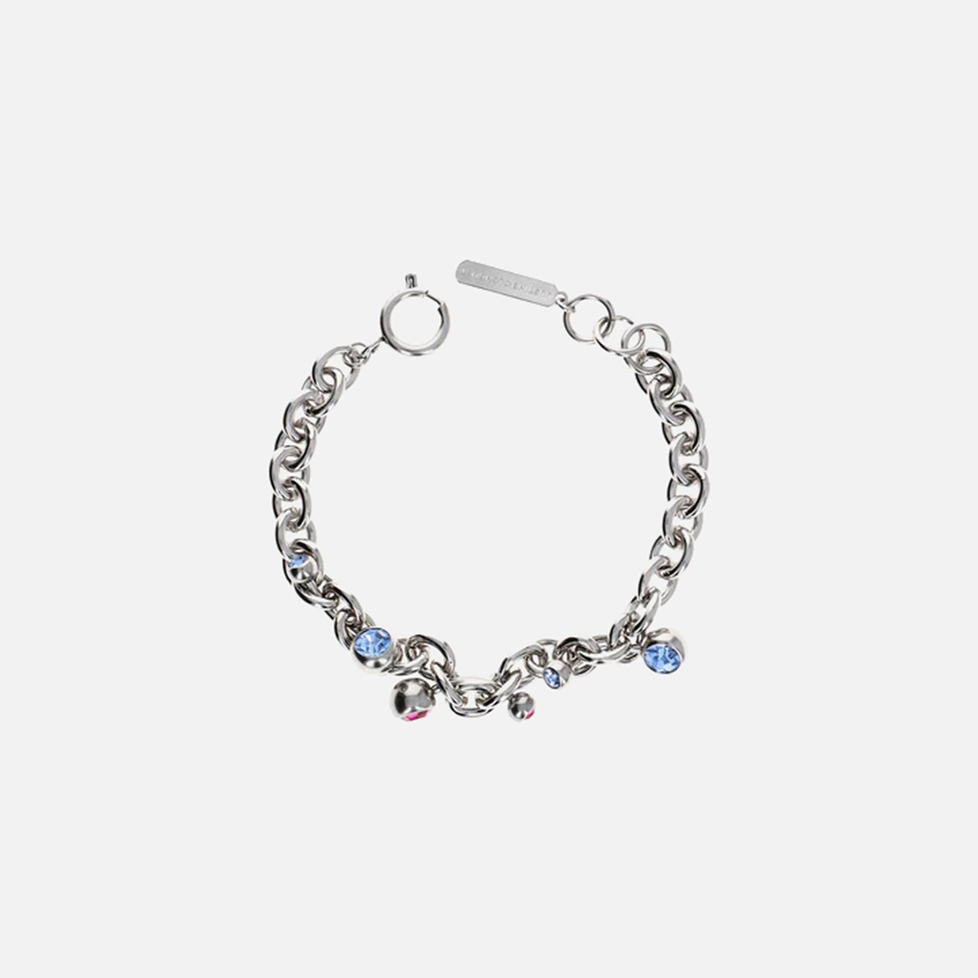 Link chain with crystal-embedded pendants