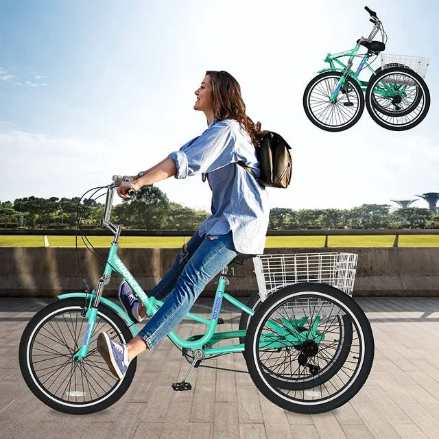 LARGE CAPACITY BASKET: SLSY tricycle has a large rear basket, load up the conveniently basket with groceries, supplies, or whatever suits your daily shopping while staying in shape.