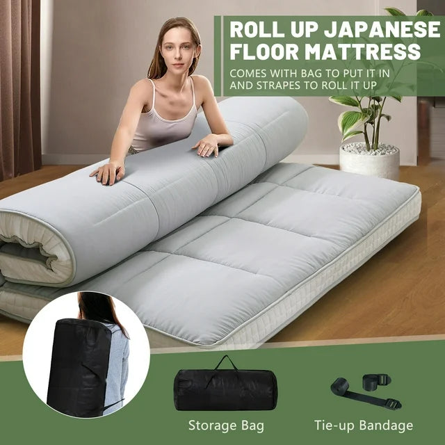 Easy to Store and Carry: Come with 1 pair of bandage, 1 storage bag, for better storage and carrying, The foldable tatami floor mattress allows you to get a comfortable sleep wherever you go. Perfect for small apartments and tight spaces, effectively save living space and move easily. You can easily fold it and put in the included storage bag when you don't need it. Easy to travel or store keep it in your closet or other storage location.