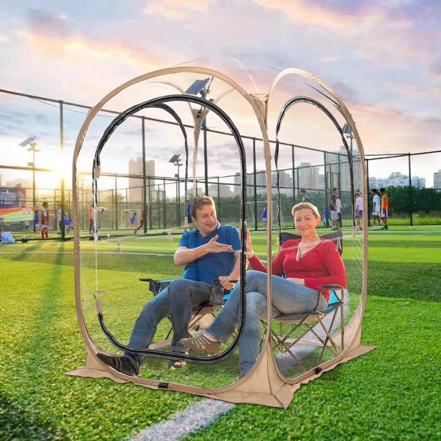 Ultra Clear Vision: Slsy camping tent made from ultra-transparent PVC, offers a 540°ultra clear view of your surroundings. Ideal for outdoor games such as soccer, baseball, softball, field hockey, and a variety outdoor activities such as fishing, camping, BBQ. The fully transparent roof is perfect for stargazing at night. All weather shelter rain tent for outdoor events.
