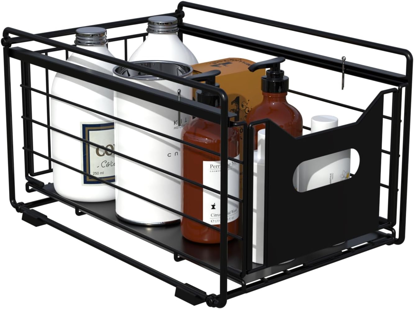 Anti-dislodging Design: The sliding cabinet organizer is not only easy to access but also suitable for smaller spaces, offering flexibility and practicality. With added pins to prevent drawers from falling out, you can trust that your items will remain securely in place.
