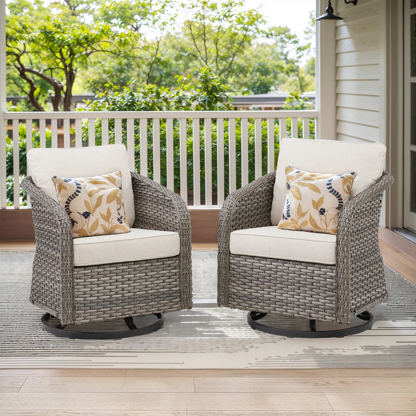 - 【2 Pieces Outdoor Patio Swivel Gliders】 Enjoy summer with Yeahumalia patio furniture while adding a stylish mid-century modern flair to any outdoor spaces, like patio, porch, backyard, balcony, deck, poolside
